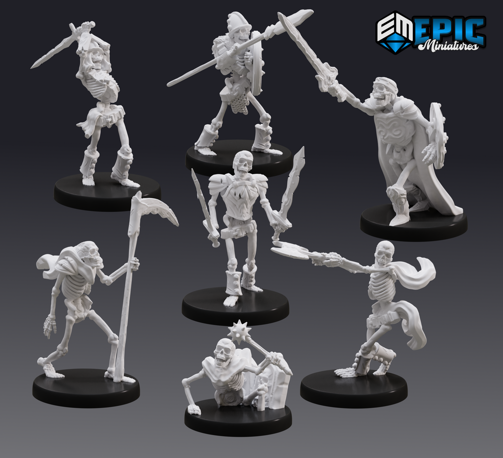 STL Files of - Skeleton General, Spear Skeleton, Sword Skeleton, Scythe Skeleton, Mace Skeleton, Axe Skeleton, Dual Sword Skeleton